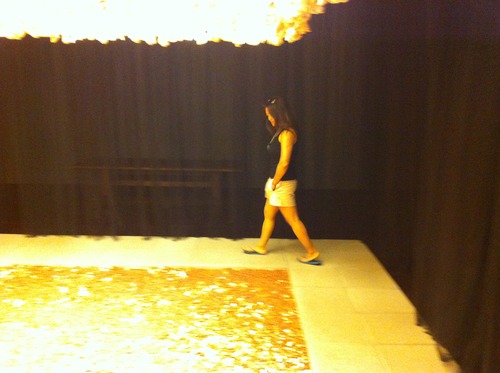 The next day, we set out in full tourist mode. Our first stop was Blanton Museum of Art. Here’s a pic of me, walking around an exhibit that consisted of a sunken pit, curtained off with black sheers. Inside the pit, millions of pennies. Hanging from the ceiling were ghostly-lit femurs.