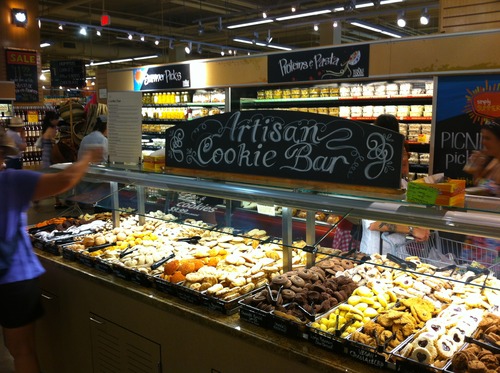 This is Whole Foods’ flagship store at 80,000 square feet. On this Saturday afternoon, it was jammed with healthy-looking folk. Even the people helping themselves at the Artisan Cookie Bar looked fit (and rich):