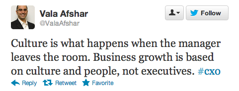 First, let me tell you what bothers me about Mr. Afshar’s original tweet. Saying that culture happens when the manager leaves the room means that the manager has nothing to do with the culture of a place, except in his or her absence. Further, saying that business growth is based on culture and people, not executives, implies that managers and executives are not people. So what are they then? While I am certain that the tweet very accurately describes work culture in many organizations, it is certainly not one that I aspire to.